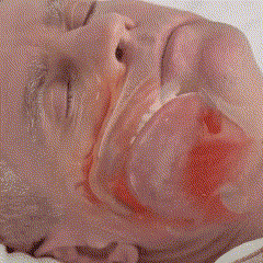 Die Spannung im Kiefer ist weg, da er die Zähne nicht mehr zusammenpresst.